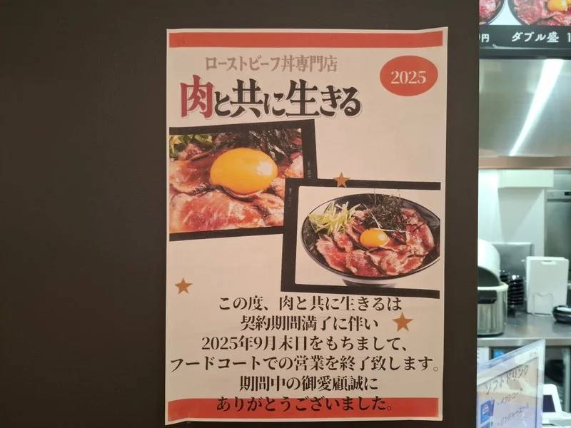 【閉店情報】おいしいローストビーフ丼が食べられる「肉と共に生きる」が、9月末で閉店…。肉好きの方は、ぜひ食べ納めに行ってくださいね。
