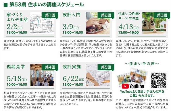 53期住まいの講座 開講します!費用:10,000円(一家族)