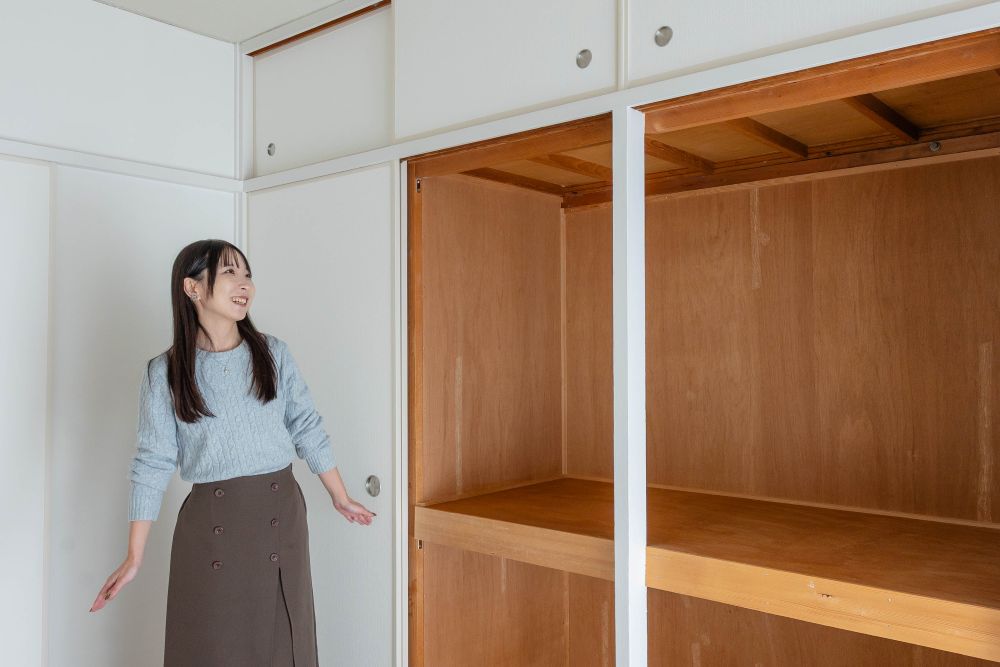 大きな押入はふとん収納にピッタリ!また、扇風機やヒーター・こたつ布団など、季節の家電や布物をまとめて収納できます!