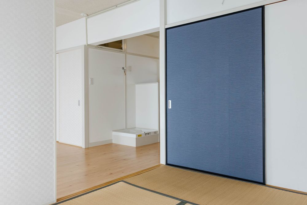 モダンなネイビーブルーの襖がお部屋のアクセントに!まるで北欧デザインのようなスタイリッシュさが魅力的です♡