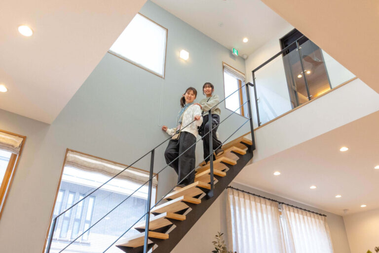 上部が吹き抜けになっていることもあってか、階段がとてもコンパクトですっきりとみえませんか?