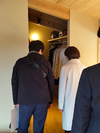 例えば、寝室横のウォークインクローゼット。 「全部オープンだとホコリが気になりそう…」という疑問にも、「気になる方は半分だけ扉をつけるなど、お客様のライフスタイルに合わせて自由に造作できるのが強みです!」と教えていただきました。
