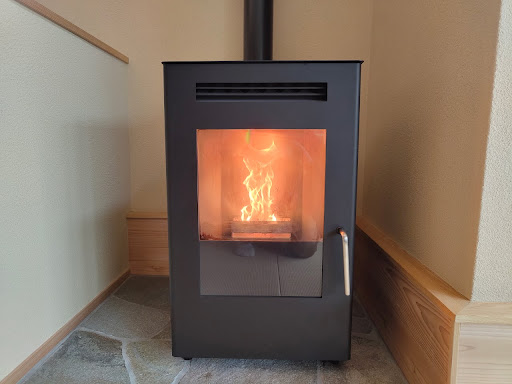 さらに、玄関の土間スペースにはインテリアとしてもおしゃれな「ペレットストーブ」が設置されていました。