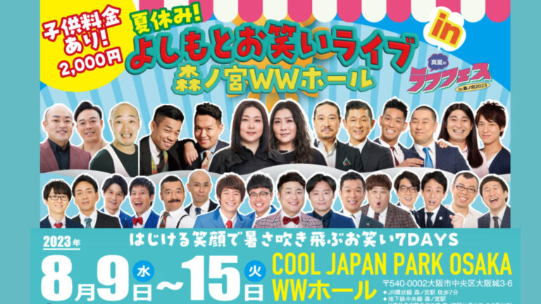人気者から旬の若手まで、様々なラインナップでお届けする 「真夏のラフフェスin森ノ宮2023」が、大阪森ノ宮・ COOL JAPAN PARK OSAKA WWホール・TTホールで開催されます!(8月9日(水)~8月15日(火)の期間に全25公演)