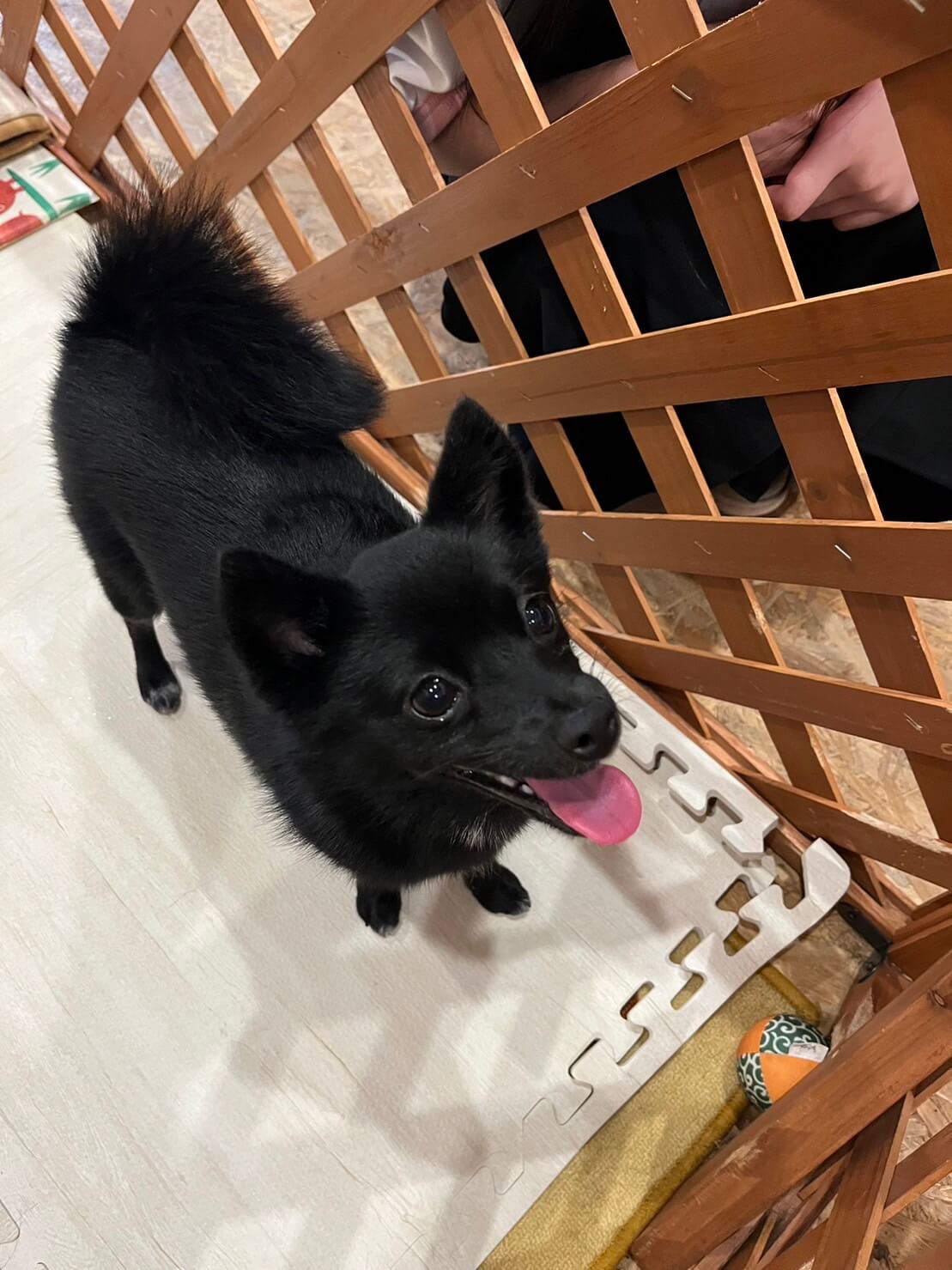 まめちゃんの前を通るたびに、目を合わせて「いらっしゃい♪」とでも言ってるかのように、カワイイ声でワンワンと出迎えてくれるんです。