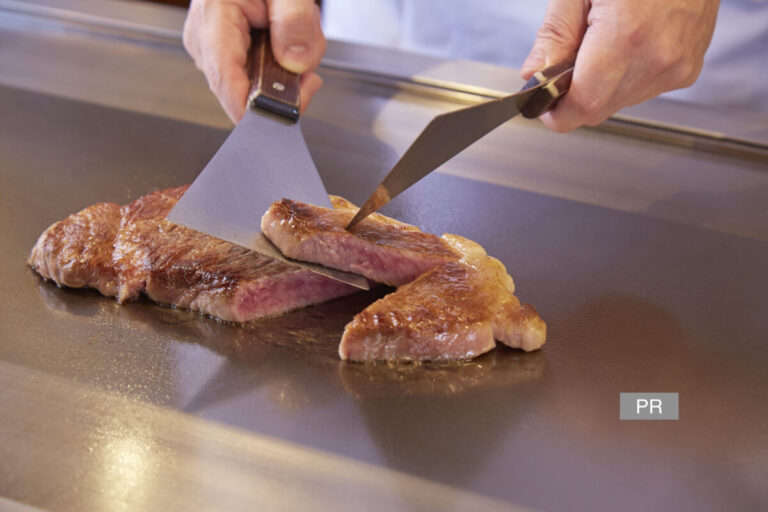熟成した牛肉を最も美味しいタイミングで提供し、目の前の鉄板で調理するのがこだわりのスタイル。