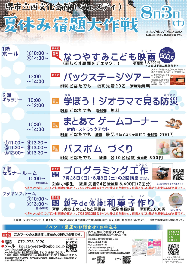 堺市西区・堺市立西文化会館(ウェスティ)にて、8/3(土)に