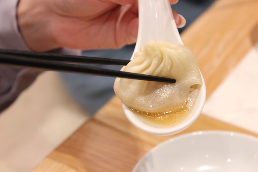特長はなんといってもその旨みスープと餡を包む皮生地。蒸し上がった小籠包は中が透けて見えるほど『超薄皮』です。