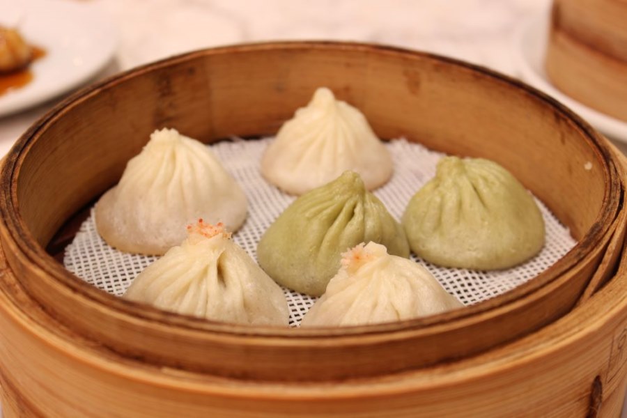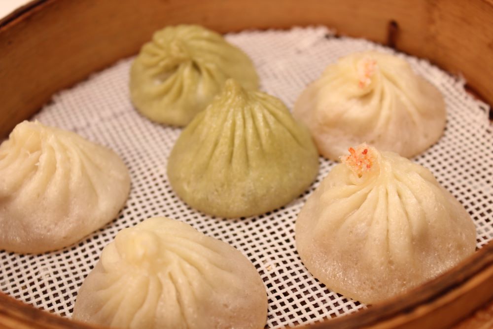 緑色の小籠包は「烏龍茶小籠包」。ふんわりと茶葉の香りが広がる、上品な味わい♡