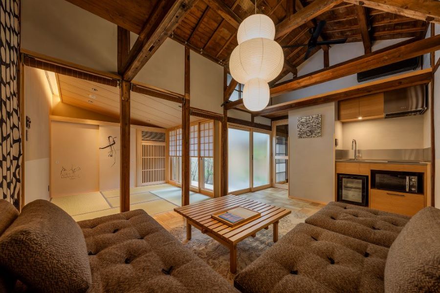 古民家をリノベーションした和モダンの客室は、懐かしさと新しさが調和。