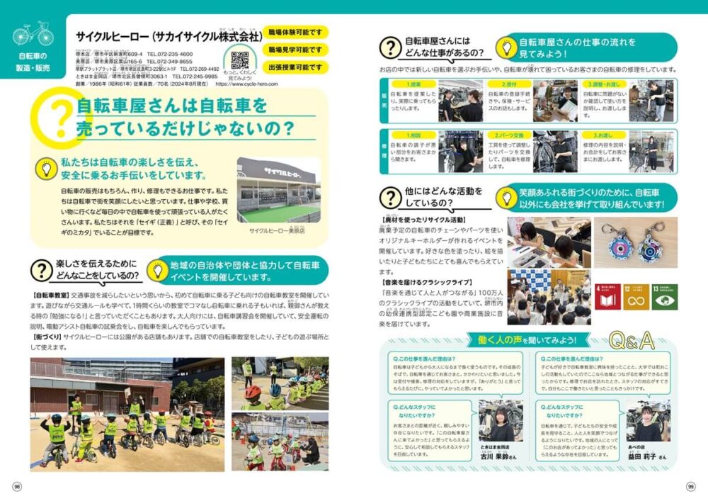 今回、堺市内の公立中学校・小学校にお配りする副読本『中学生のためのお仕事ブック』『小学生のためのお仕事ノート』に掲載もいただきました。