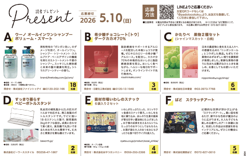気になるアイテムを見つけて、ぜひLINEから応募してくださいね♪
